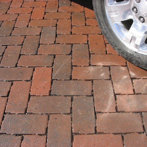 Concrete pavers can eliminate all these issues. Pavers are little individual concrete units. So they are hard - concrete. But since they are small and are surrounded by an expansion joint around every one, they are flexible like asphalt. Essentially, they are getting the best of both worlds. Since there are these tiny gaps between every paver, you would likely never see a crack if a single paver developed one. Though you could easily replace one paver if you wanted. If there was a dip, or foundation issue - or even if you needed to run a line or pipe under your pavers - No problem. Pull them up. Run your pipe, fill the hole, cover with the same pavers you removed. As far as durability goes, they have roughly 3 times the compressive strength as poured concrete, and they absorb less water.